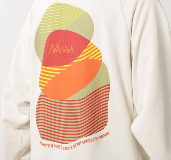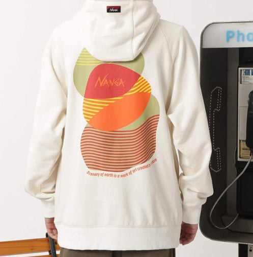 正面にはブランドロゴ、バックプリントには、抽象的な植物や水面、時間の流れをデフォルメしたグラフィックがデザインされており、アート要素のあるアイテム。シワになりにくい素材で、縫い目に沿ったファスナー付きポケットも配備。タウンユースやアウトドアはもちろん、リラックスタイムにも。