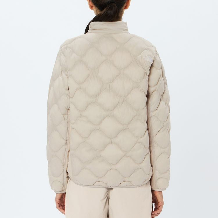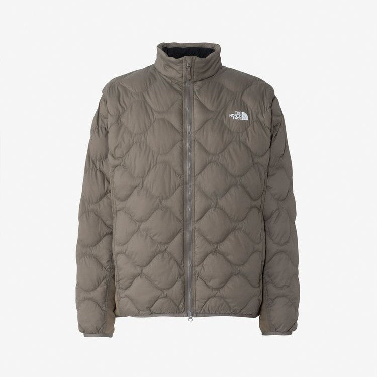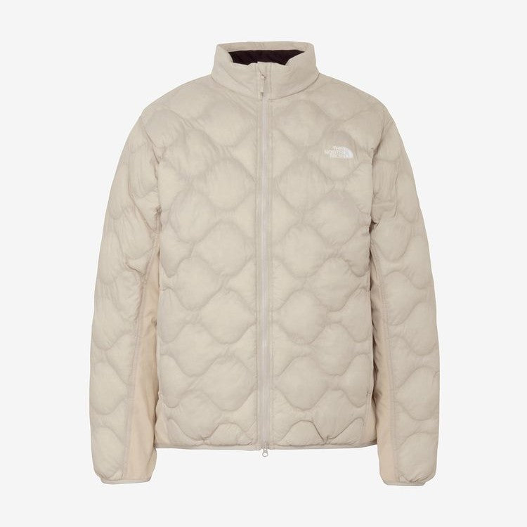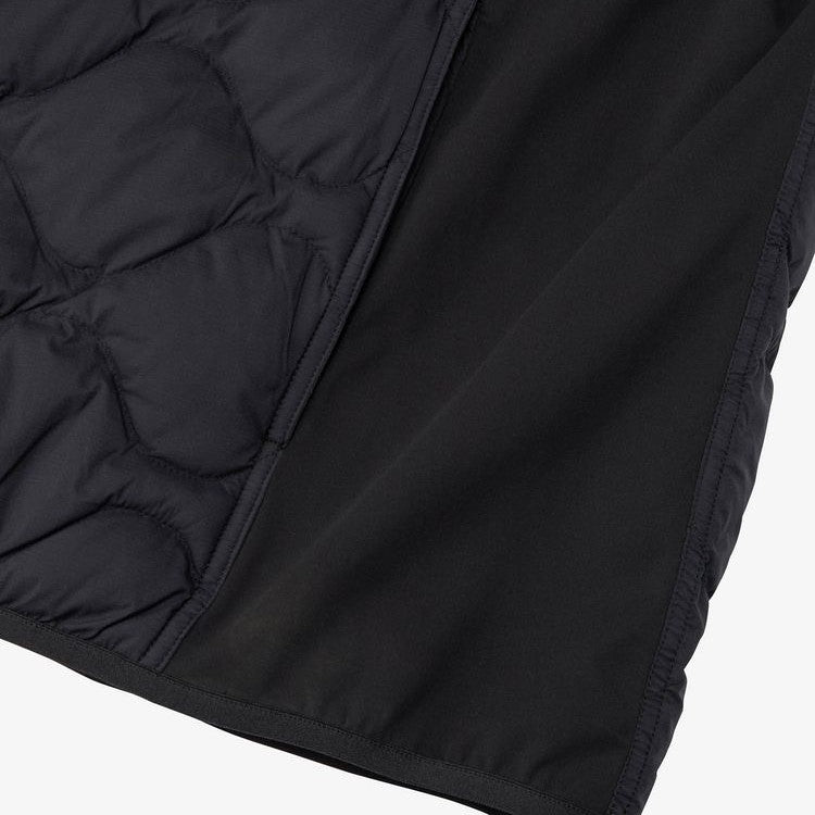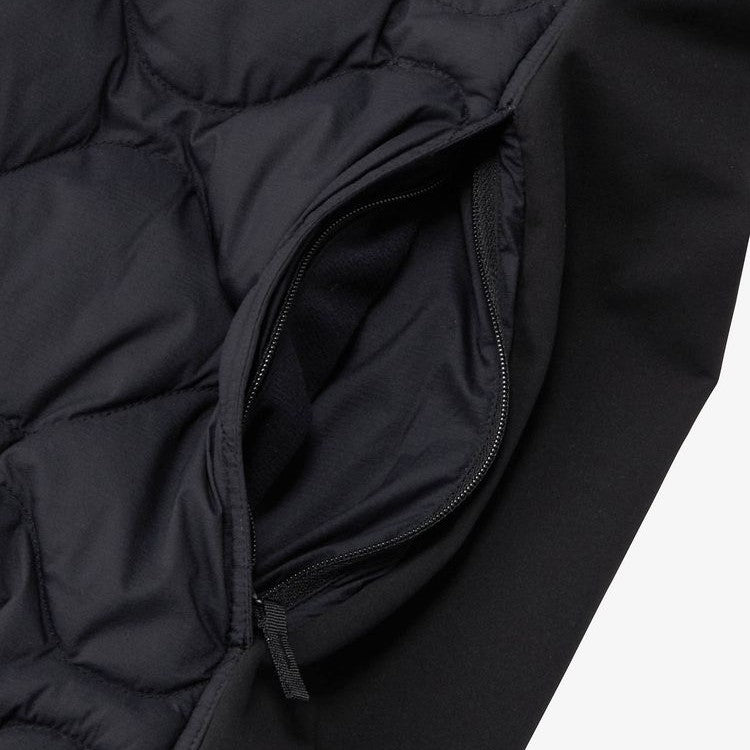 THERMOPLUME+を中わたに採用/前身頃をはっ水素材、脇、袖下をストレッチ素材で切替/内衿に肌触りのよいメッシュ素材貼付/フロントファスナー逆開仕様/左右脇ファスナー付ポケット/左胸刺繍ロゴ