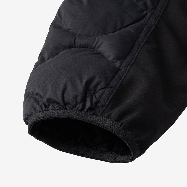 <表地>PERTEX QUANTUM ECO 20D Ripstop(ナイロン100%)<脇>Recycled Polyester Thermal Light(複合繊維(ポリエステル)57%、ポリエステル43%)<裏地>Recycled Nylon Taffeta(ナイロン100%)<中わた(襟以外)>THERMOPLUME+(ポリエステル100%)<中わた(襟)>PRIMALOFT Insulation Black BIO 80g(ポリエステル100%)