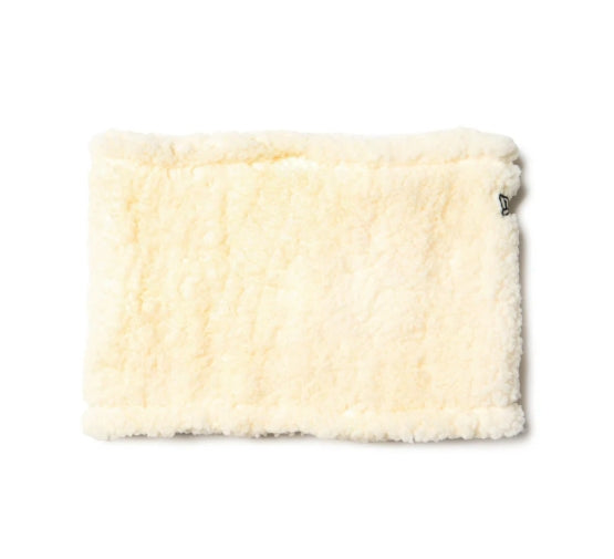 毛足が長く柔らかなボアフリースを採用したネックウォーマー。着用感を調整可能なドローコードを配備しています。