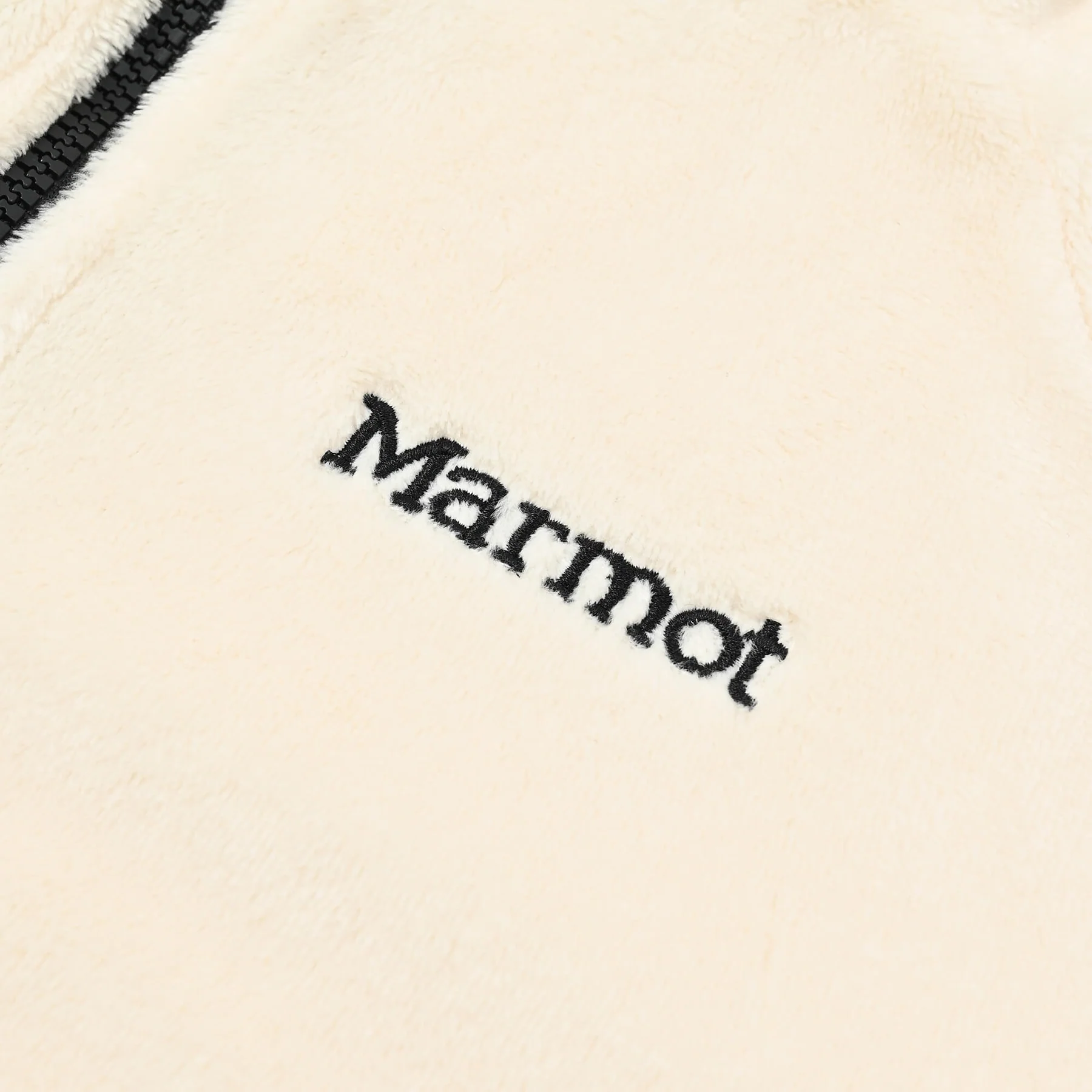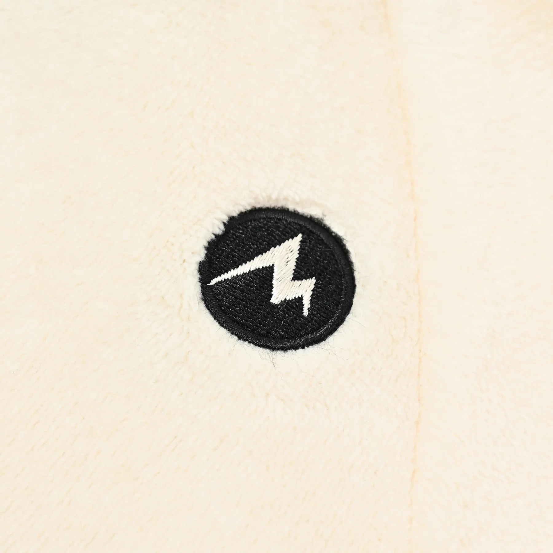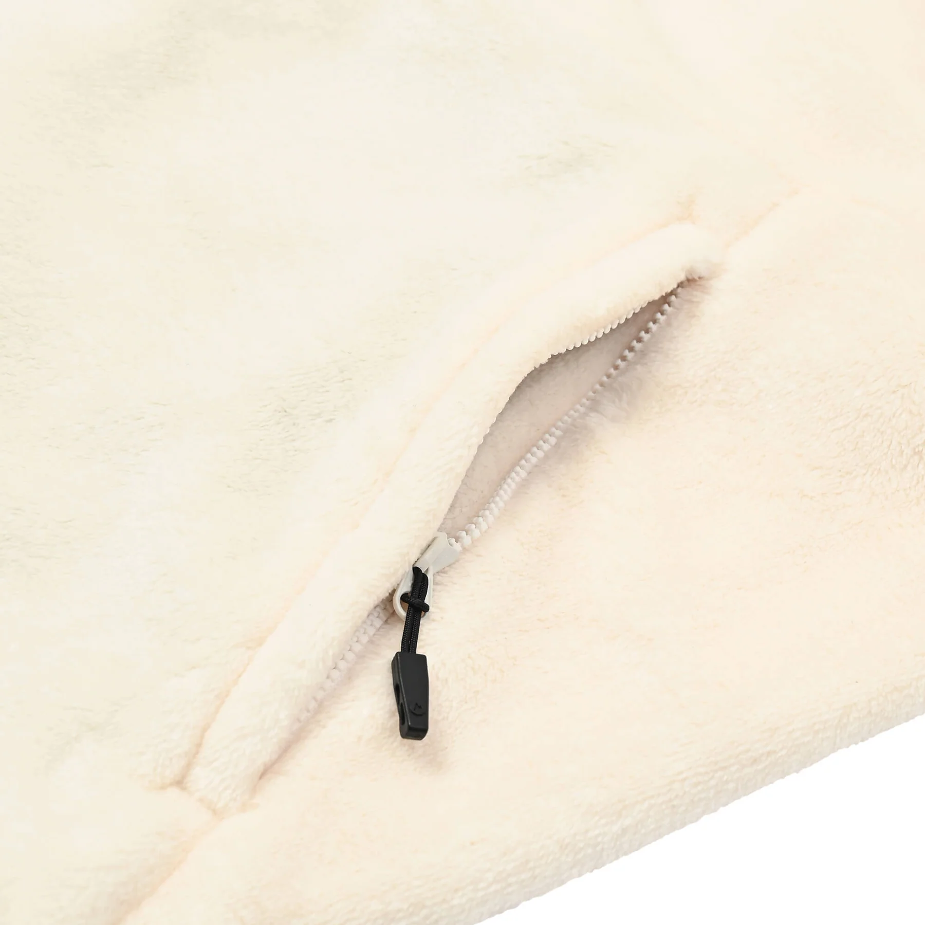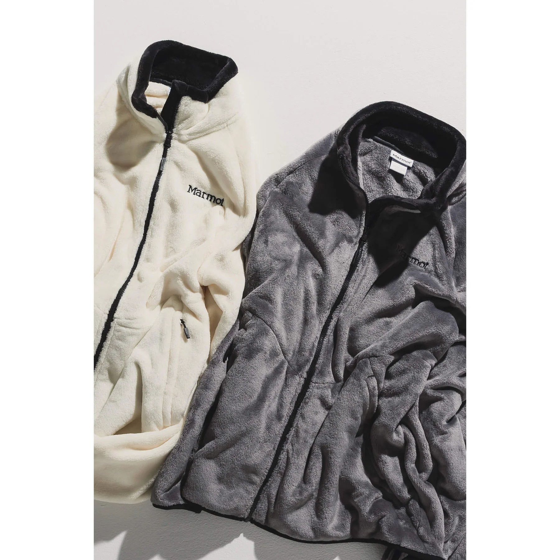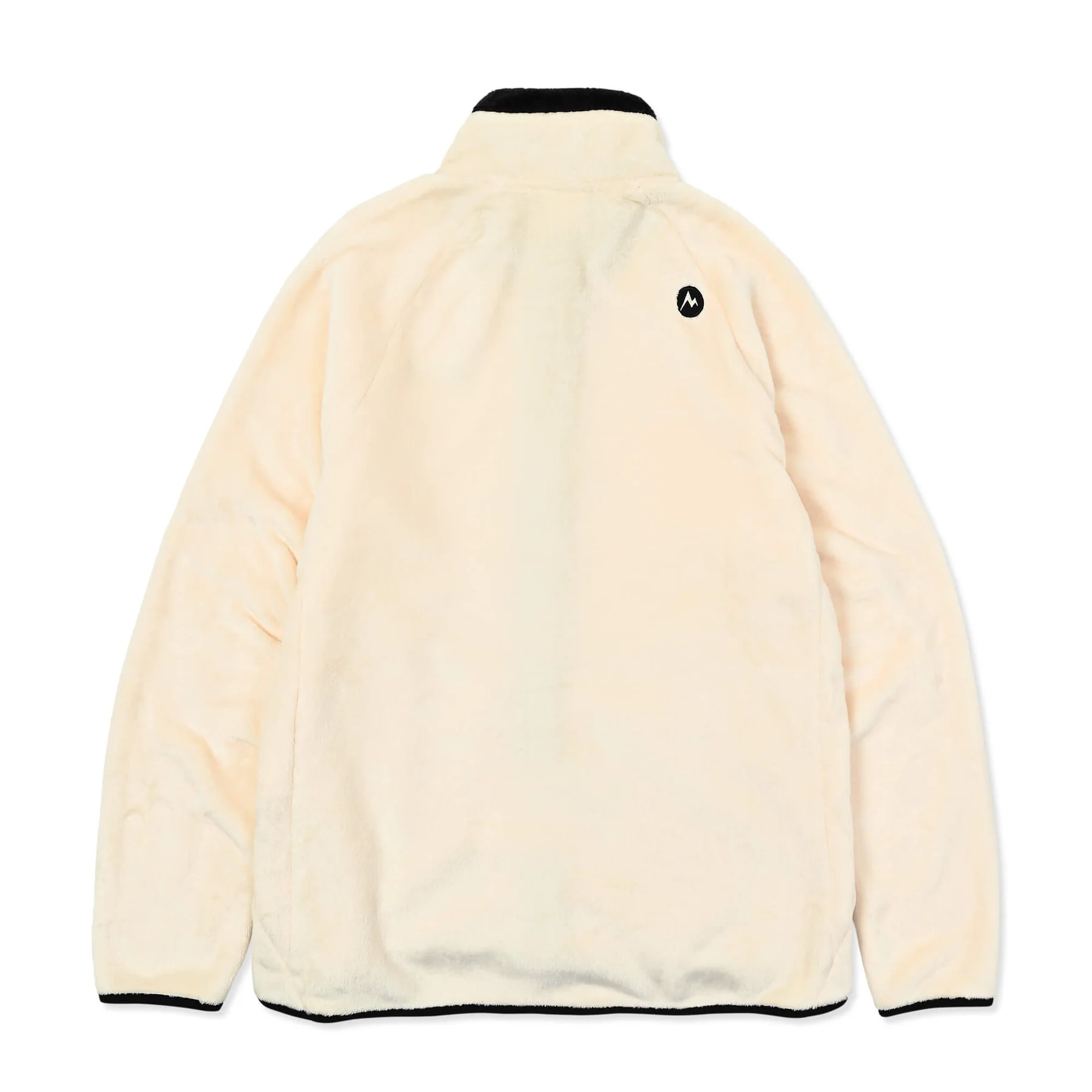 ポリエステル100%のハイパイル素材を使用したフリースジャケット。