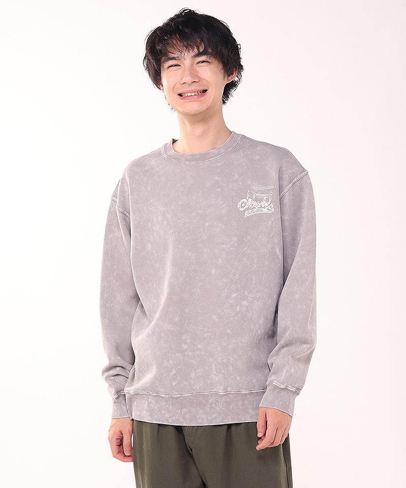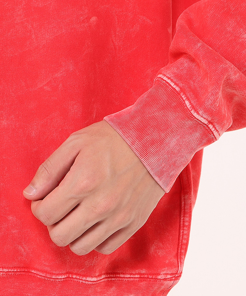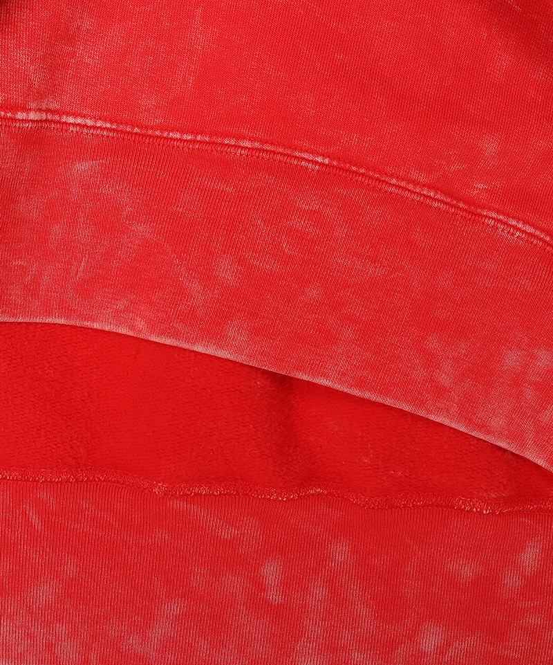 ピグメント加工を施したUSAコットン100%仕立てのスウェットを使用。製品の状態で特殊な顔料で染めて洗いをかけることで、古着のようなフェード感のある風合いを表現。着こんでいくことで自然な色落ちを繰り返し、経年変化を楽しむことができます。