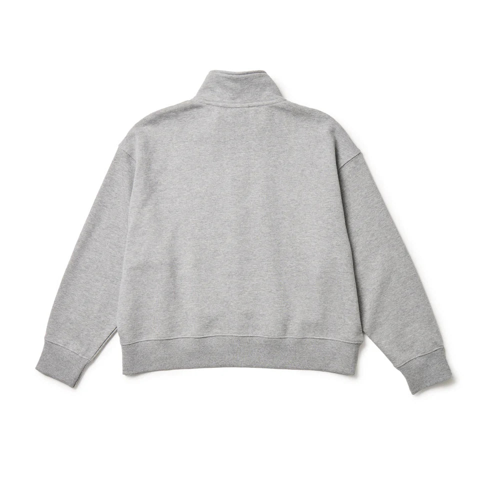 スポーティな要素をプラスしたハーフジップ。レイヤードにも使いやすいハイネック仕様。ふっくらと厚みを持たせた保温性の高い裏起毛素材を使用。