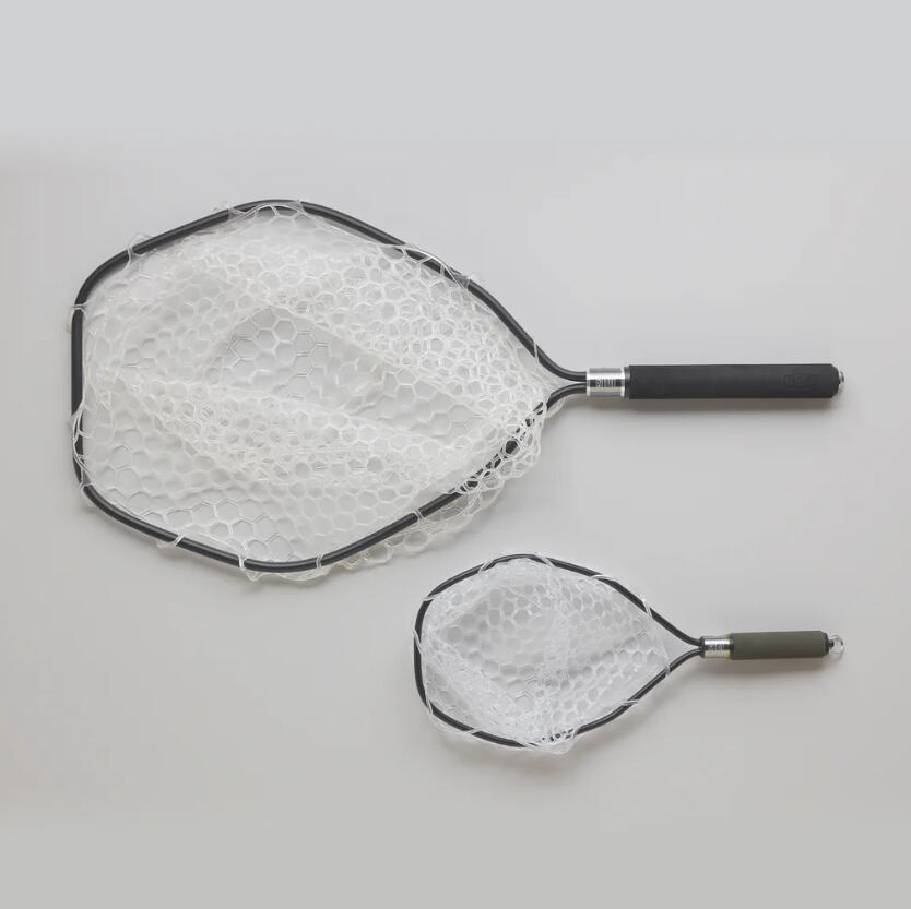 釣り場での取り回しの良い2サイズラインナップのラバーランディングネット。