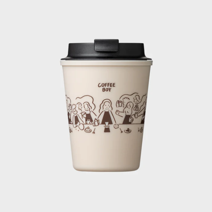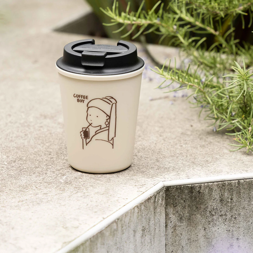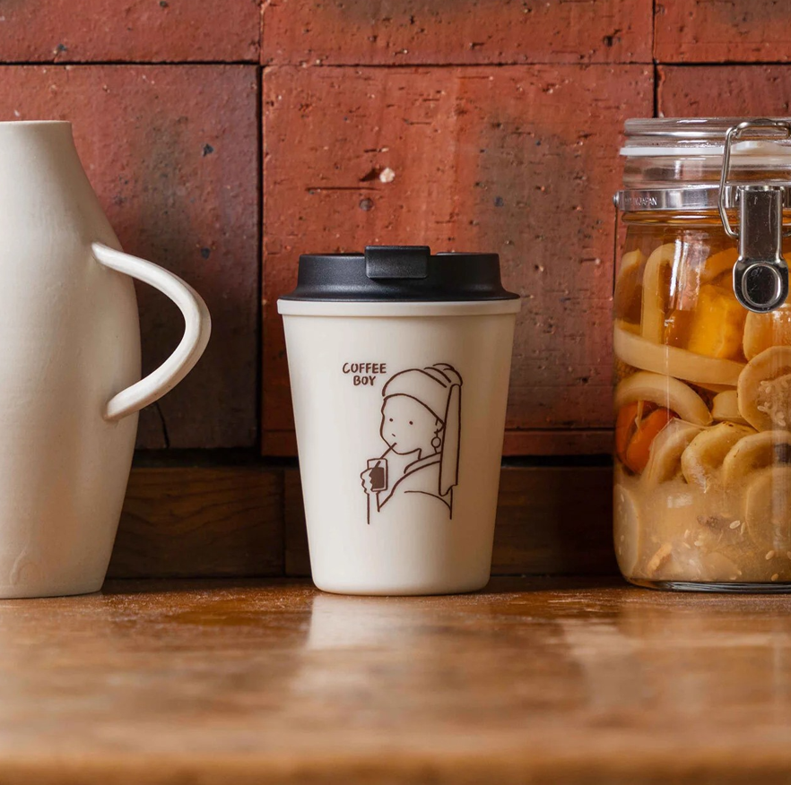 コーヒーのある日常をテーマに、シンプルで温かいアートを描き続ける「COFFEE BOY」。名画をモチーフに独自のユーモアを加えたイラストを、軽くて持ちやすいWウォールタンブラーで楽しめます。