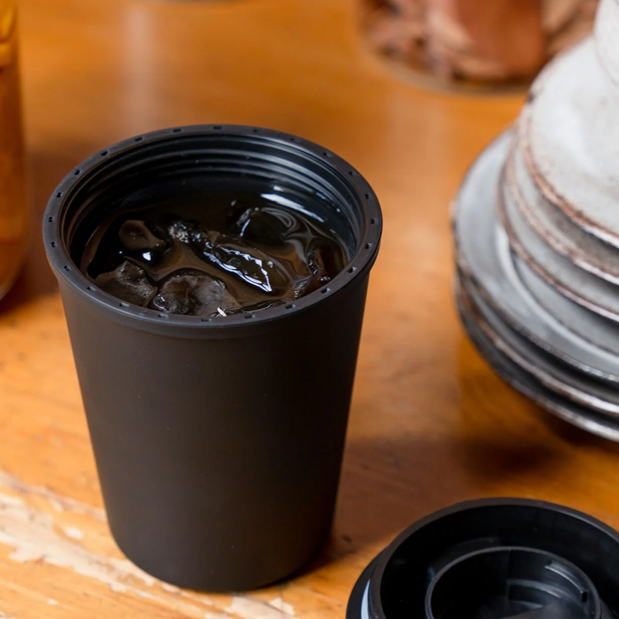 二重構造のカップは、ホットドリンクを入れても熱くて手に持てないという心配もなく、冷たい飲み物でも結露しにくいのが特長です。