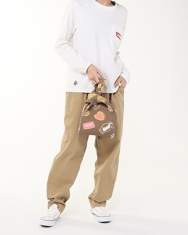オリジナルグラフィックを編み込んだ、ジャカード編みのニット生地を使用。ふっくらとした肉厚感と、柔らかく伸縮性のある風合いが特徴です。コンパクトに折りたたんで持ち運べるため、エコバッグやサブバッグとしても活躍します。