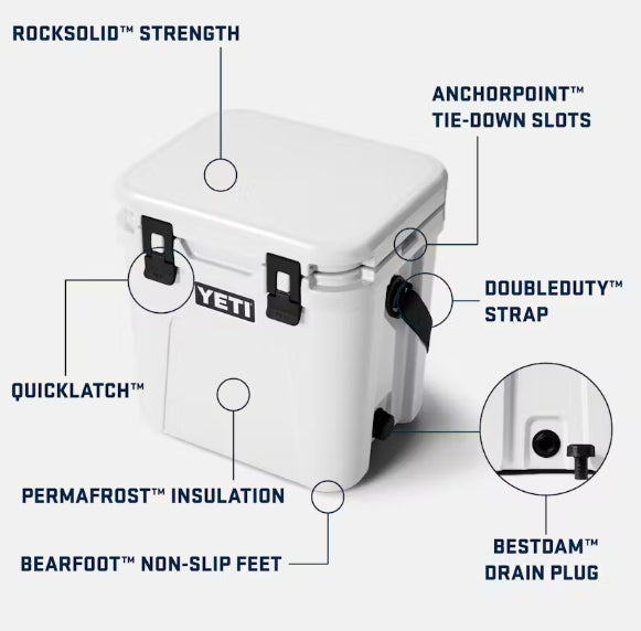 - Roadie 24ハードクーラーは、より多くの荷物を入れてスペースをとらず、ドライブのたびにシートの後ろに快適にフィットします。 DoubleDutyストラップとBestdam排水プラグで簡単に運搬できるように設計されており、素早く排水できる利便性を追加します。