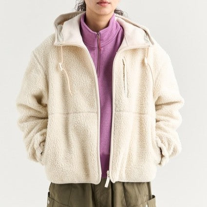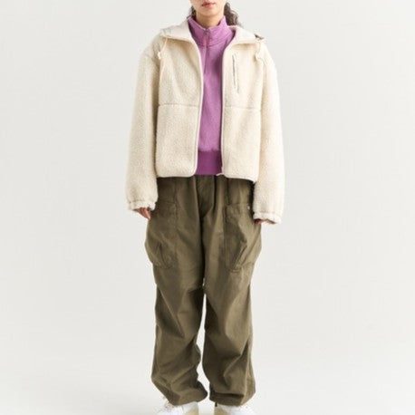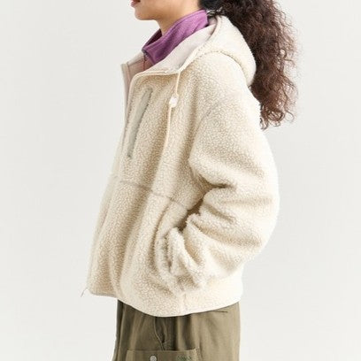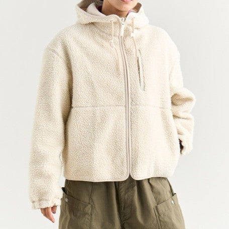 柔らかなボア素材を贅沢に使用した、ふんわりと包み込むような着心地のジップアップパーカー。