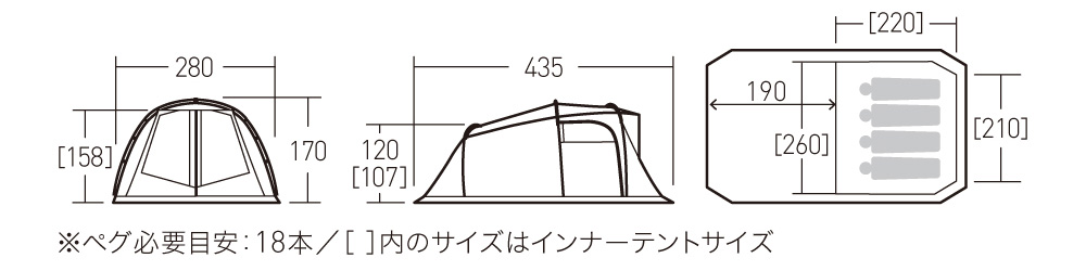 グランドシート(インナーテント床部分):ポリエステル210d(耐水圧1,800mm)