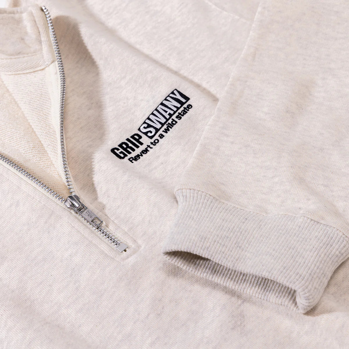 アズマ裏毛機を使用した、ふくらみのある柔らかい生地感が特徴のハーフジップ。