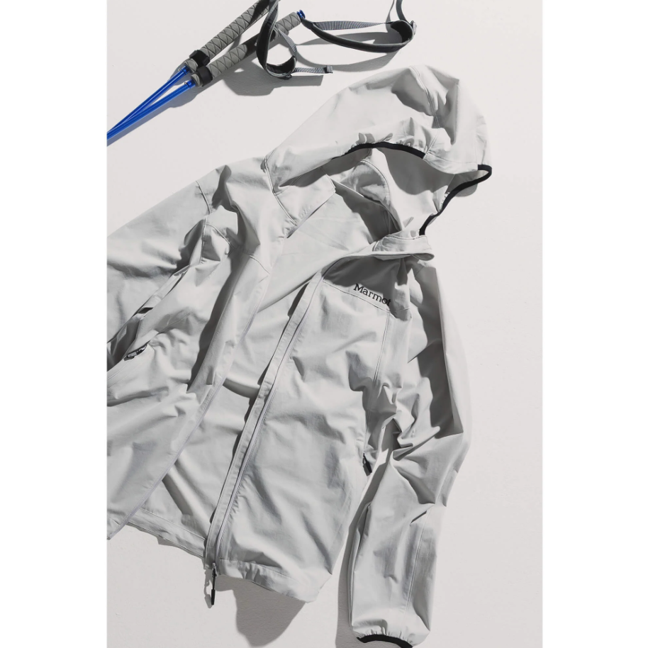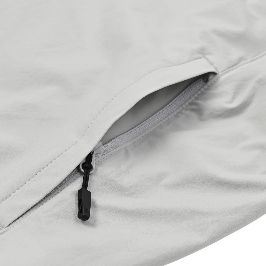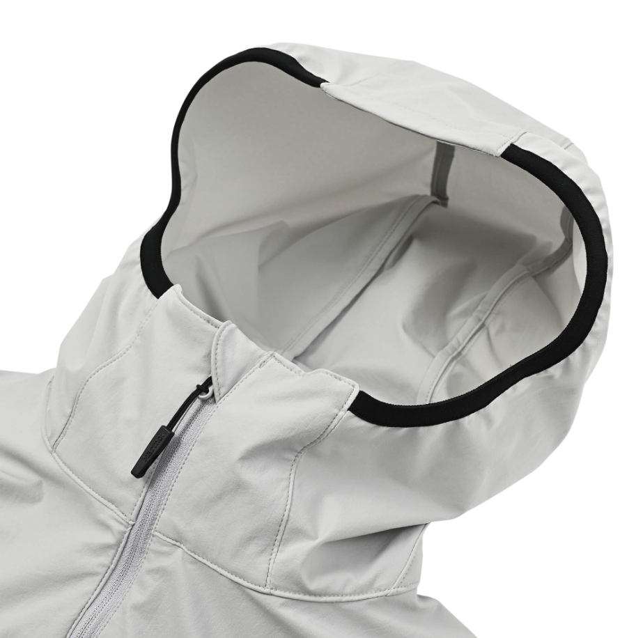 風の侵入を防ぐタイトフィットのフードや、便利な脇ファスナーポケットを備え、機能性も充実。