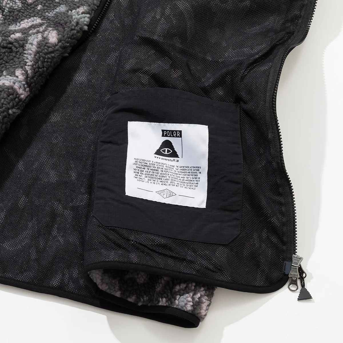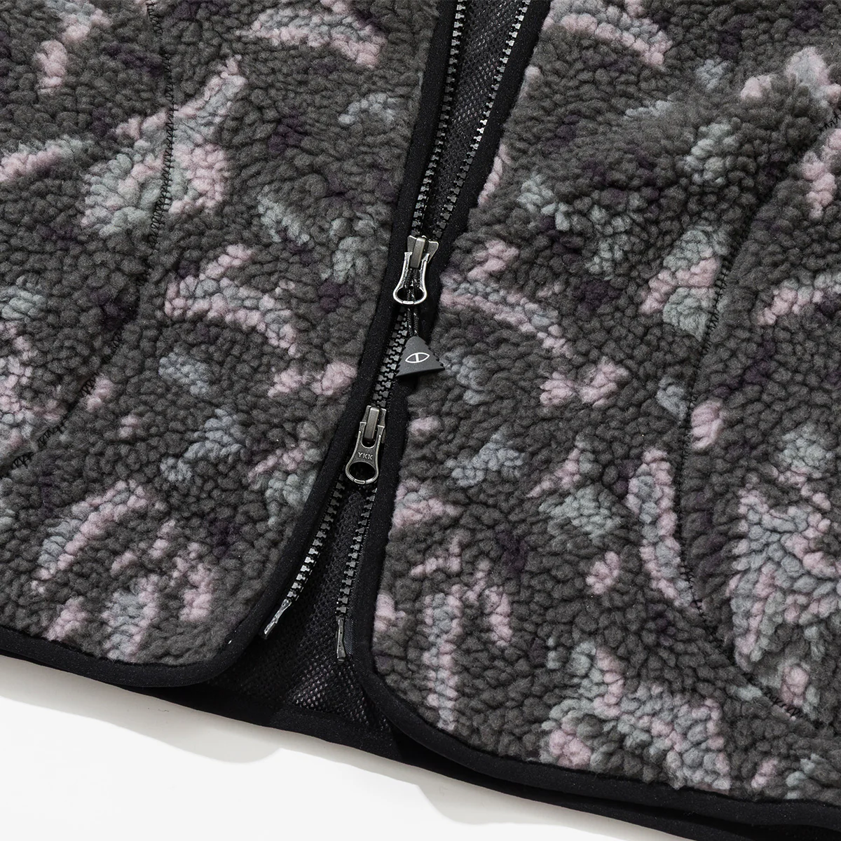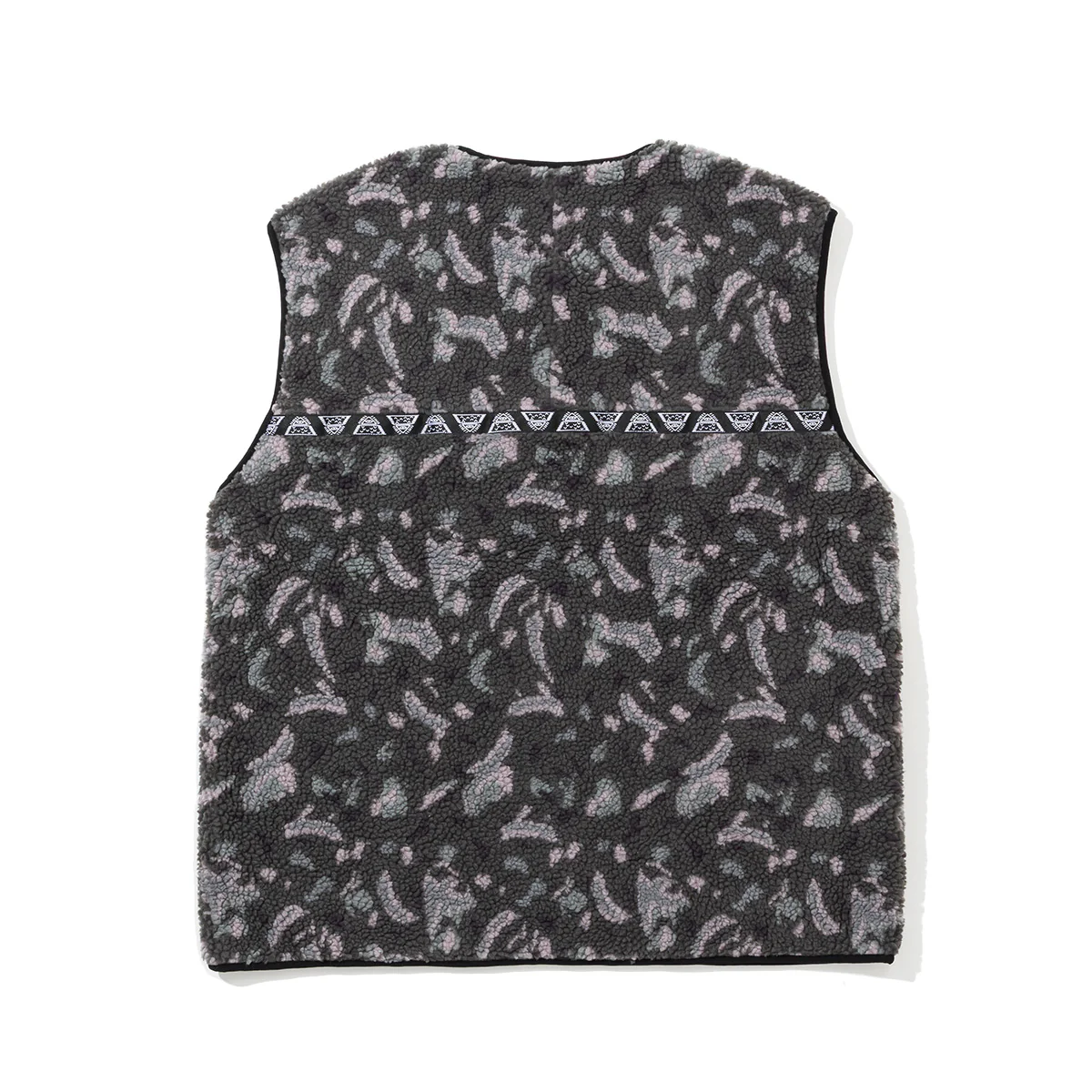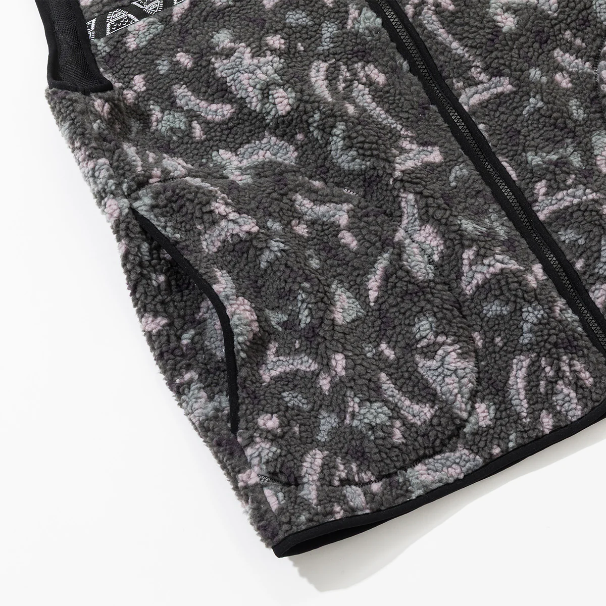 サイクロプス柄のチロリアンテープがアクセントになったジャガード生地のフリースベスト。ノーカラーデザインで重ね着がしやすく気が付けば毎日着ているなんてことも。防寒性能も高く家でのリラックス時間から、アウトドアシーンまで手放すことができない。