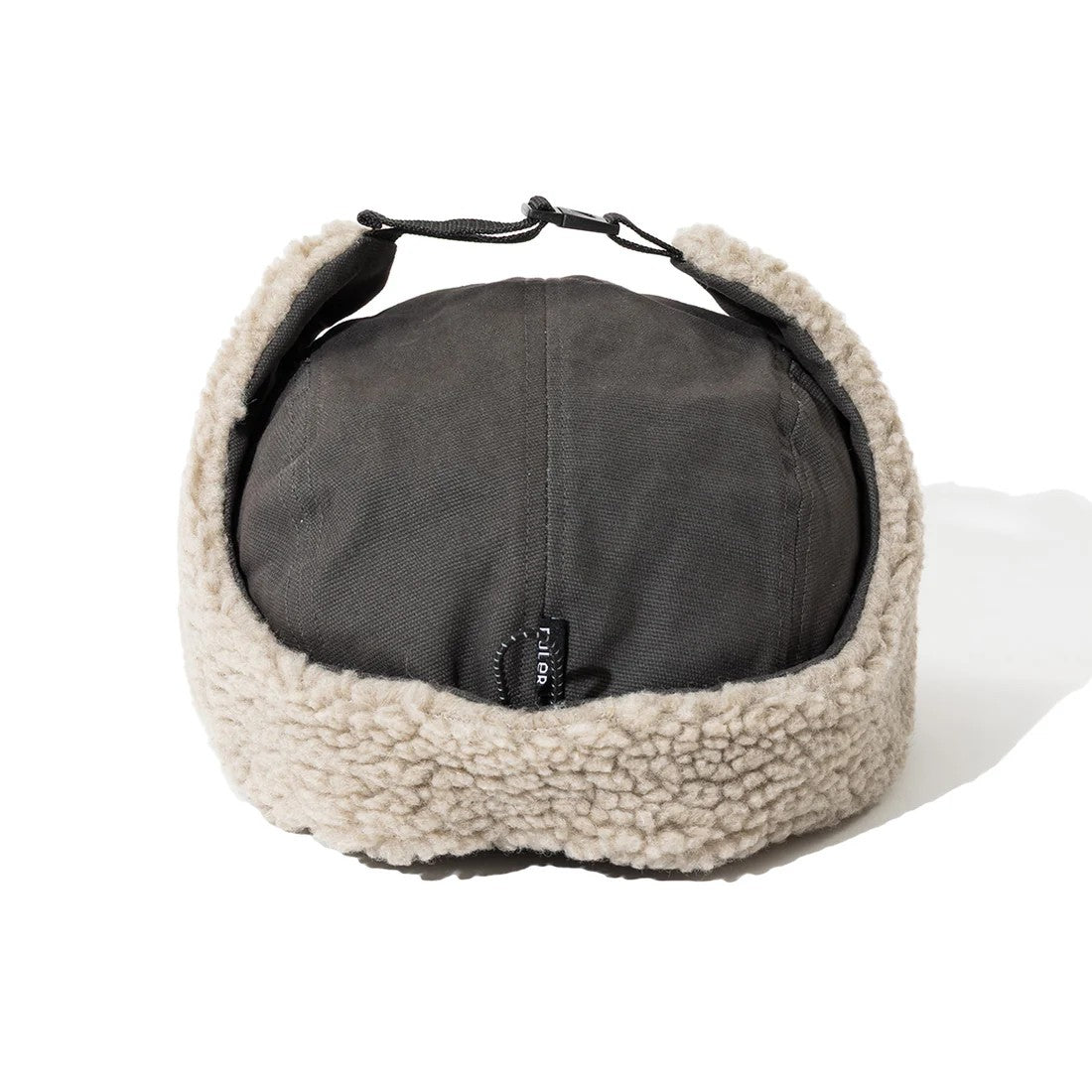 ボアフリースのバイザー、フラップが特徴的なフライトキャップ。フロントにはさりげなくサイクロプスロゴのパッチをあしらいシンプルながらもPOLERらしく仕上げました。秋冬スタイリングのアクセントになるだけでなく、実際の暖かさもかなりのもの。