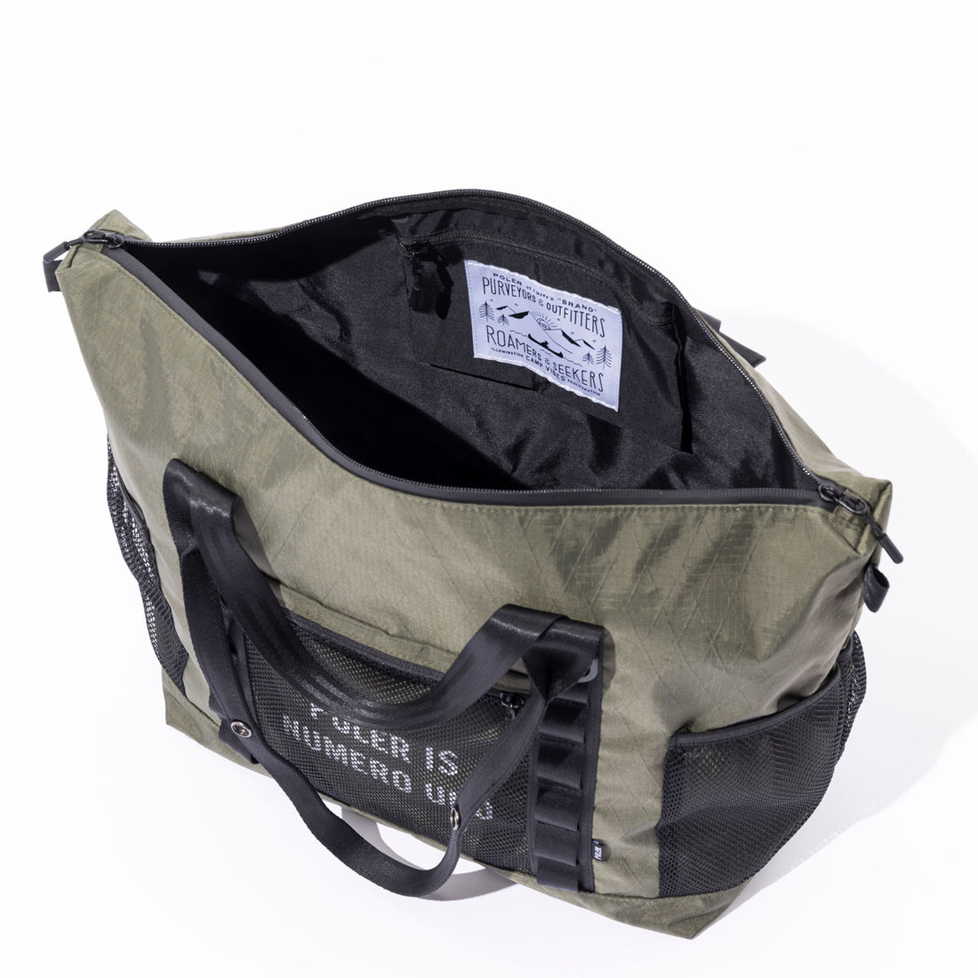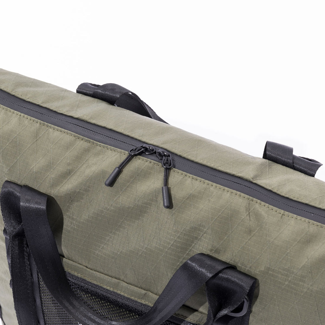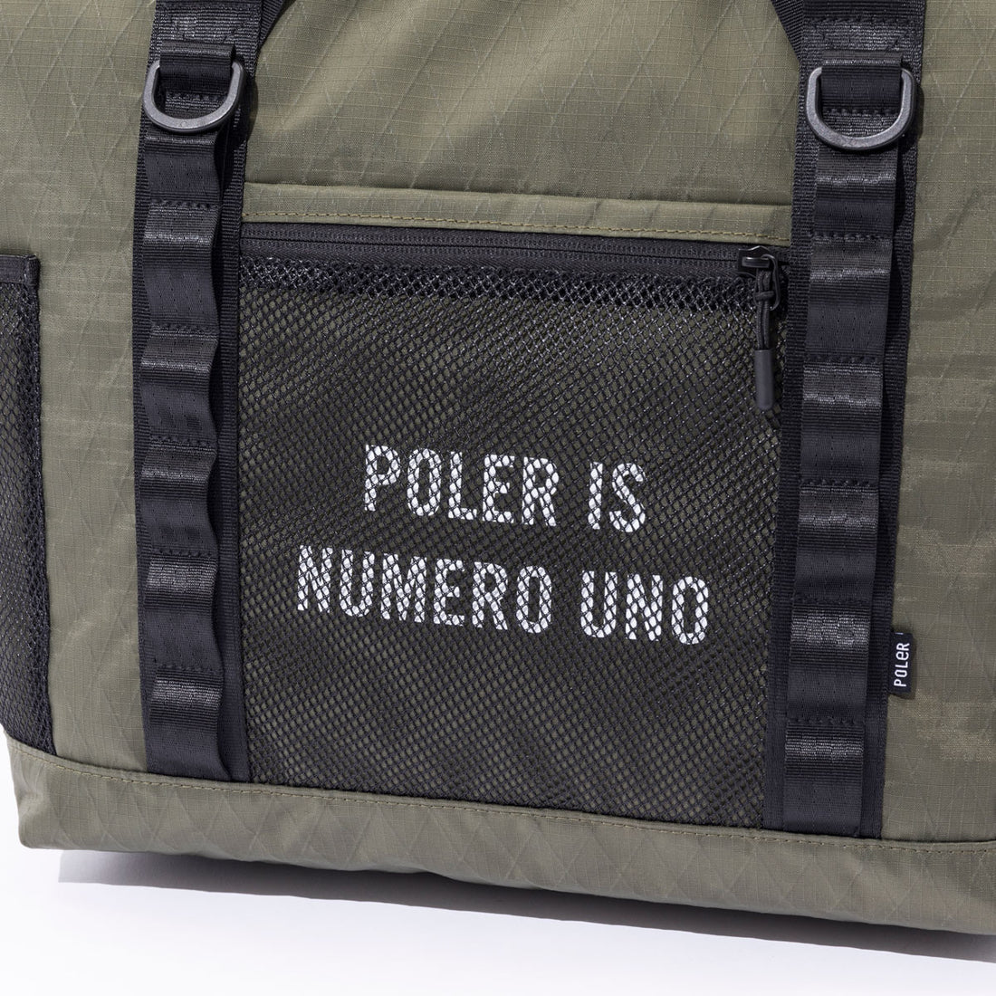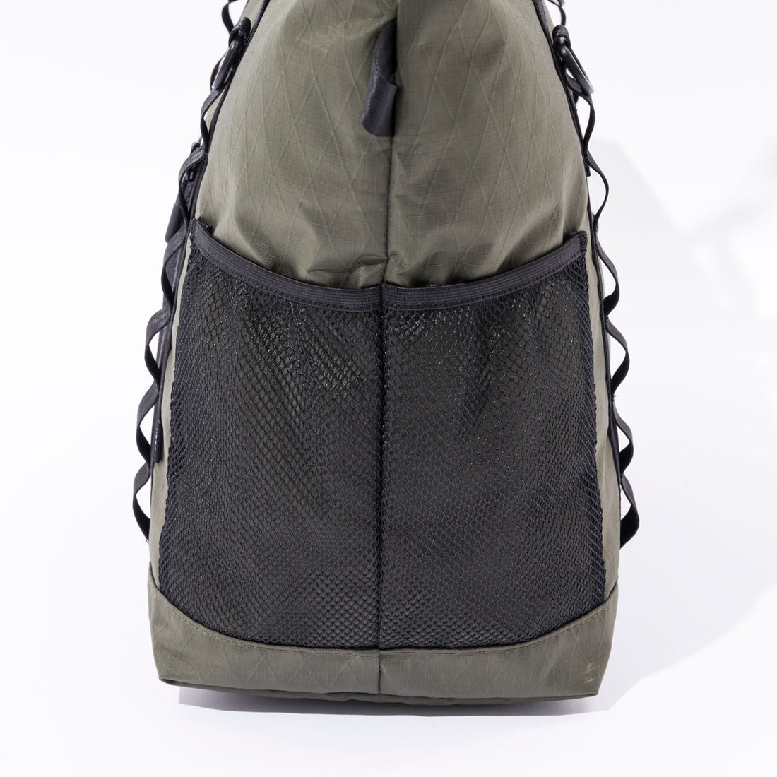 軽量でありながら強度に優れる高機能素材、X-CLOTHをメインファブリックに採用したトート。アクセサリ等を付けるのに重宝するウェービングベルトをあしらいミリタリーにメイク。各所にメッシュポケットを搭載してあり機能性も◎