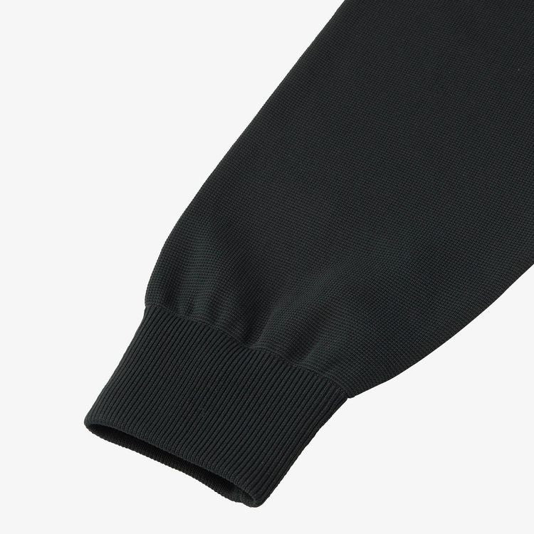 メインに採用したポリエステル素材のニット生地は、しなやかに伸縮して体の動きに追従。脇はメッシュ調の編地に切り替えて、運動中の衣服内のムレを排出します。UVプロテクト(UPF50+、紫外線カット率95%以上)付きで、強い日差しにも対応。