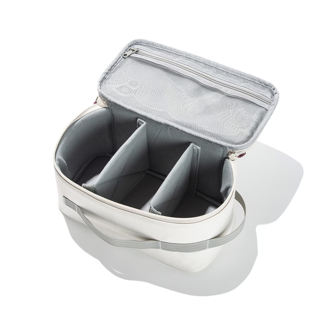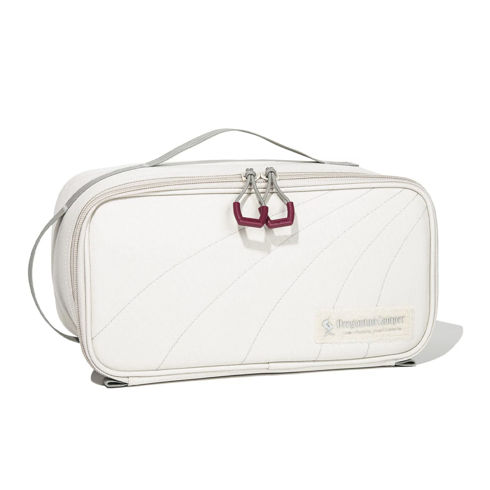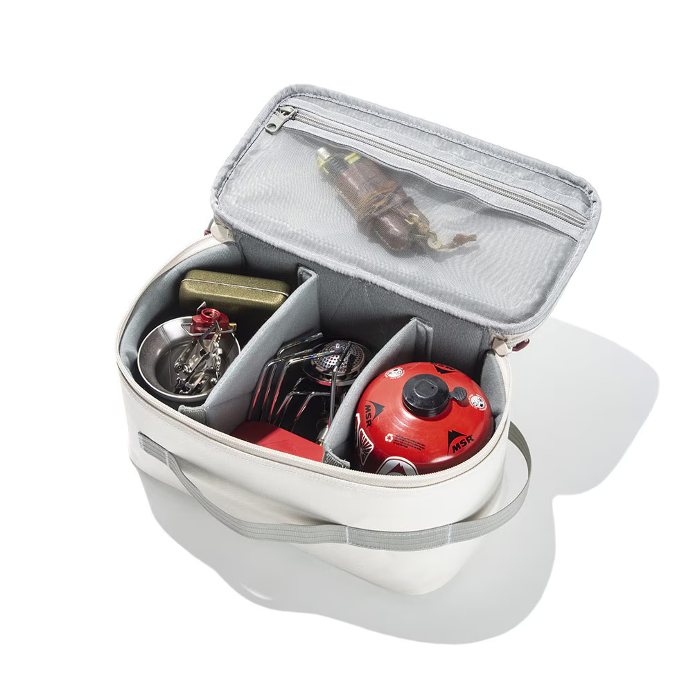 キャンプはもちろん、トラベルシーンでも活躍する、M-FLATの1.5倍の高さがある、セミハードギアバッグ M-FLAT PLUSです。少し高さのある、食器類や小型ランタンなどをしっかり守る、優れたクッション性を備えています。仕切り板(大)が1枚、(小)が4枚付属しており、最大6ルームに小分けでき、収納するギアに合わせたアレンジが可能です。さらに、蓋の裏側にはハードメッシュ仕様のポケットを採用し、機能性と収納力を兼ね備えています。